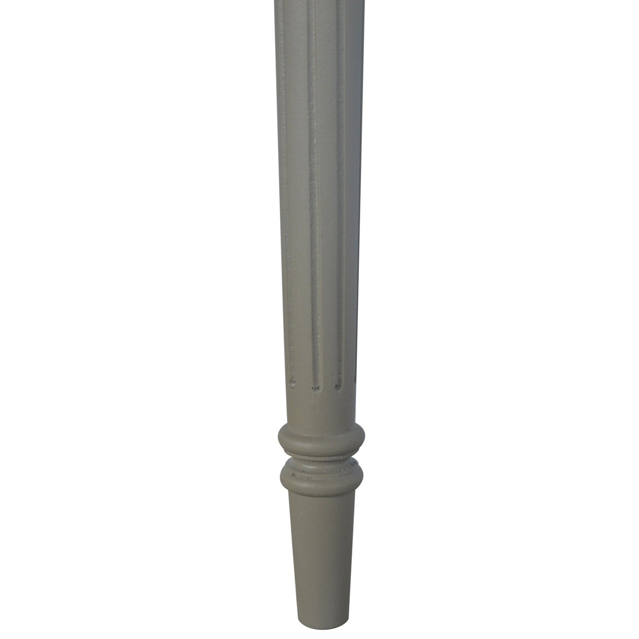 This one drawer writing desk is constructed from 100% solid mango wood and has a french grey hand-painted base and a stained oak-ish top. Other features include hand-carved flute legs to add to the vintage French style and a shell handles for easy access into the drawer. The perfect addition to any home.